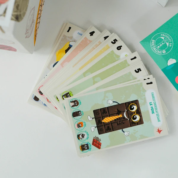Our Easter box is full of treasures! Two milk chocolate bars (Pralin + Rainbow Chips*) a bag of pistols to become a chef with our recipe ideas and two games. A tray to win a surprise and a 7-family game. Behind every family is a story. discover the adventures of our 7 chocolate families.