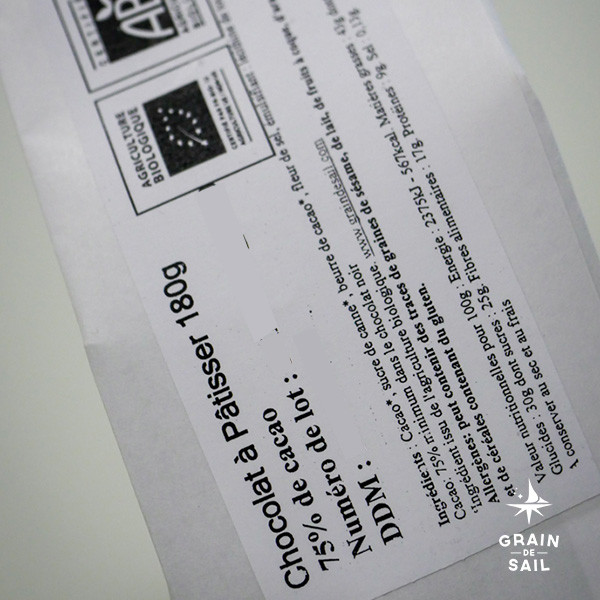 Bag of 180 g chocolate pistoles – 75% cocoa – ORGANIC