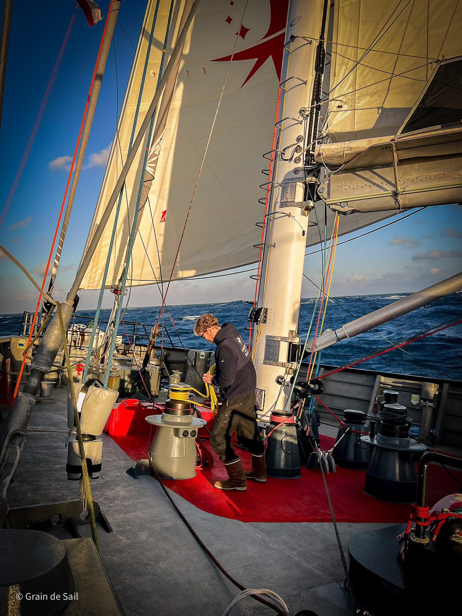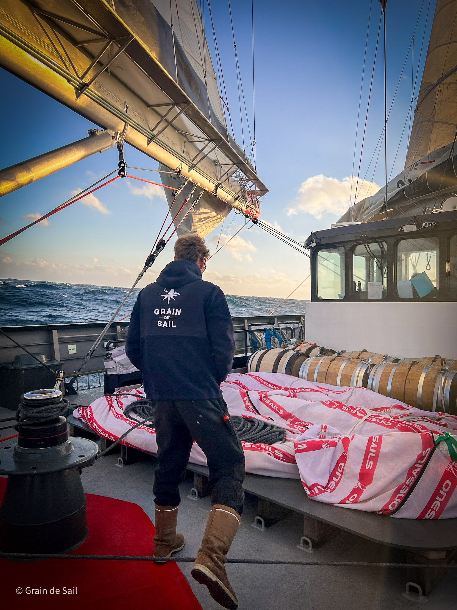 Pour affronter le vent, les embruns et les longues traversées de l’Atlantique, notre équipage du Grain de Sail 2 devait être bien équipé.